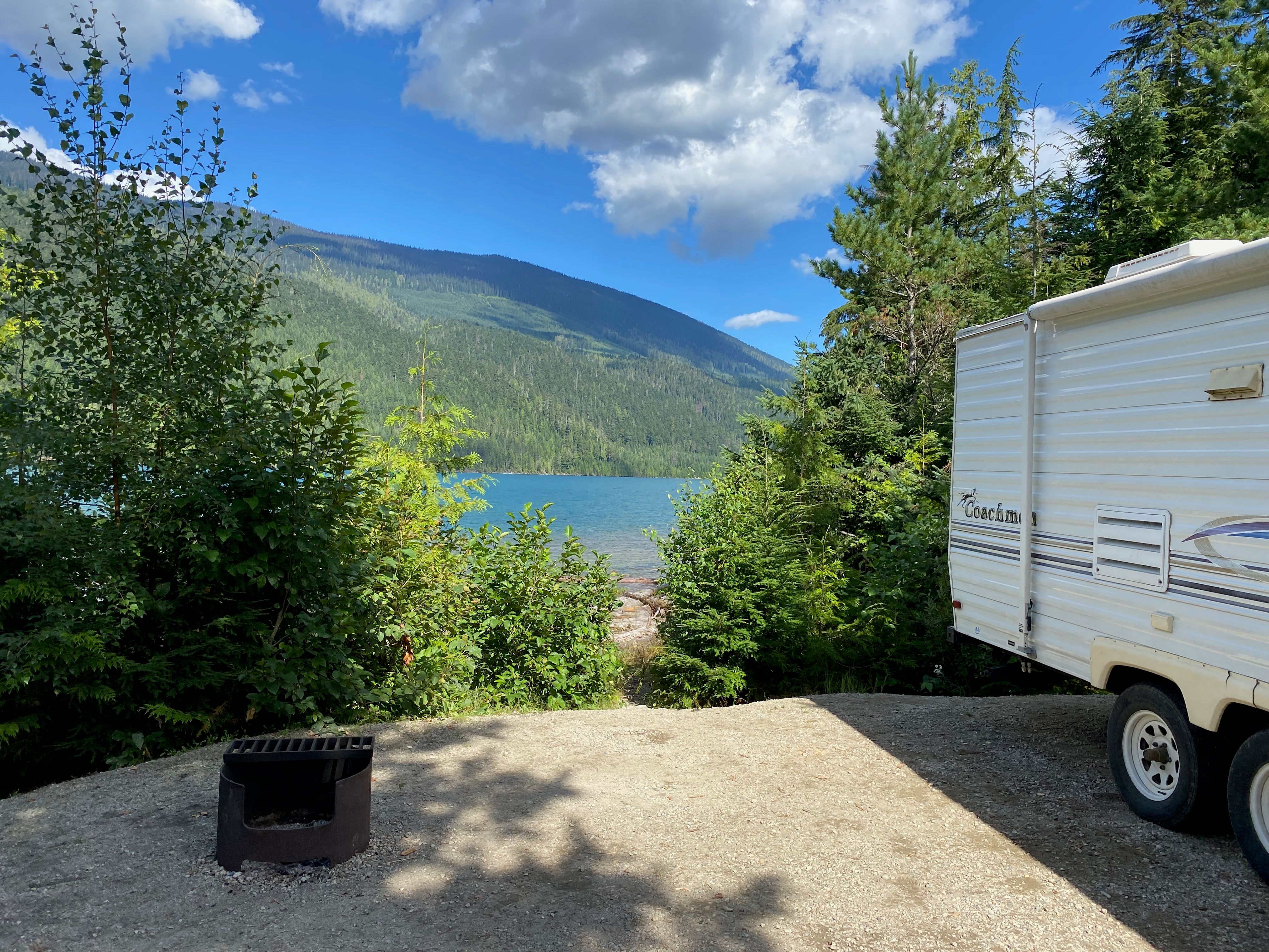 - Location: Western shore of Lake Revelstoke, ~20 min north of town on Highway 23