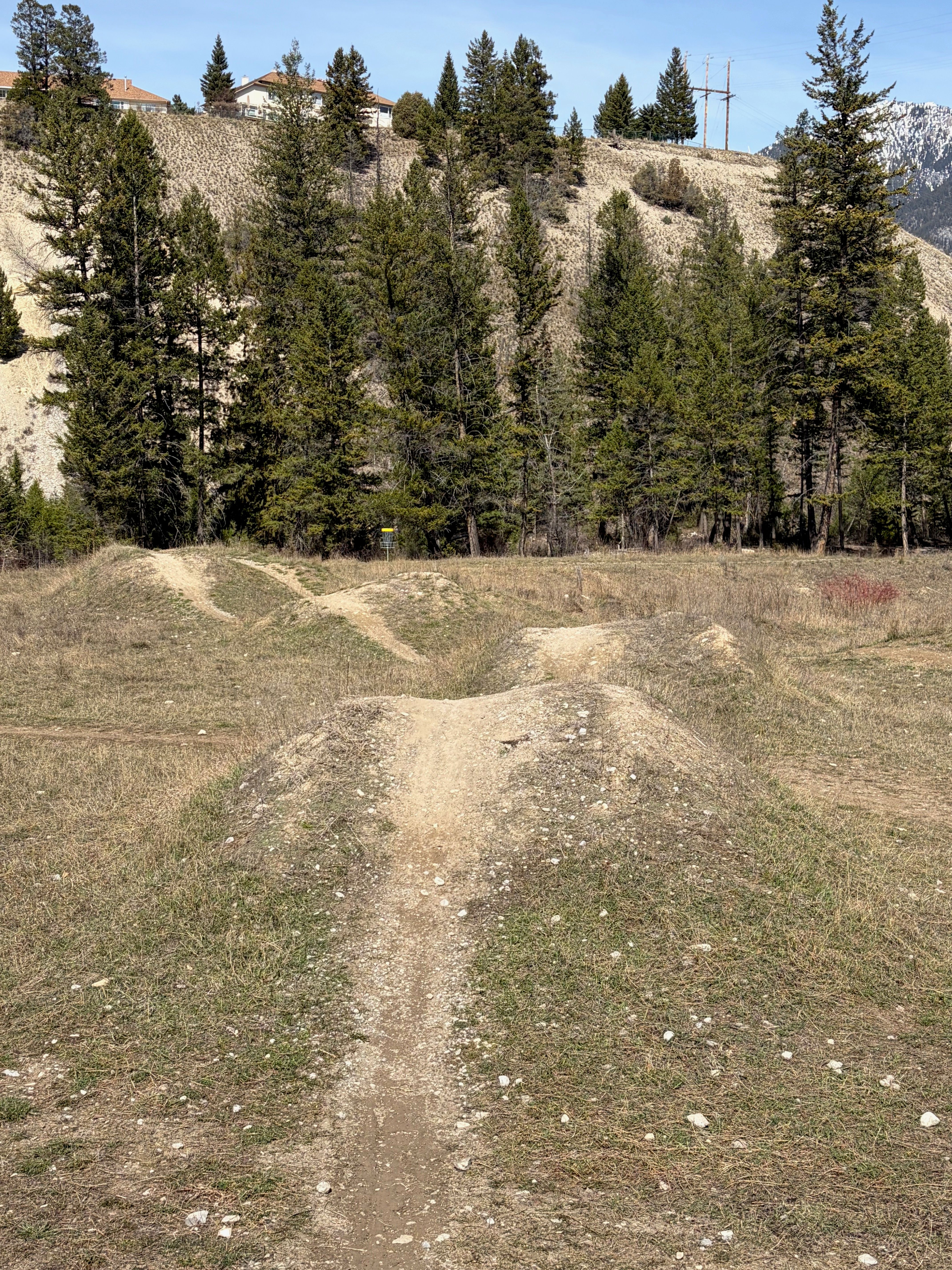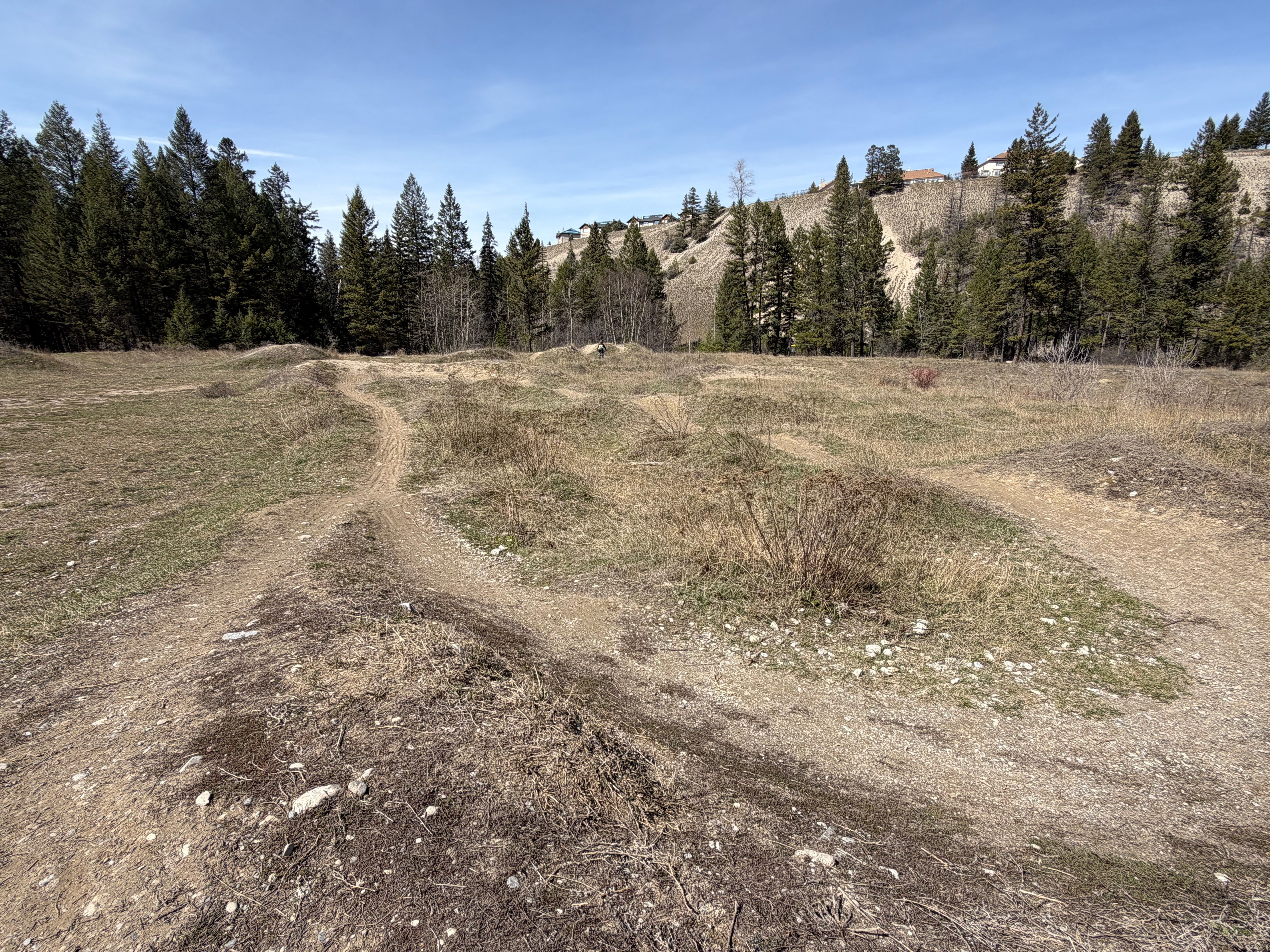 The whole area sits below Rotary Park where Hwy 93 meets 93/95 — you can see it from the road if you know where to look. It was built in 2012 by the Columbia Valley Cycling Society, and it's held up well.